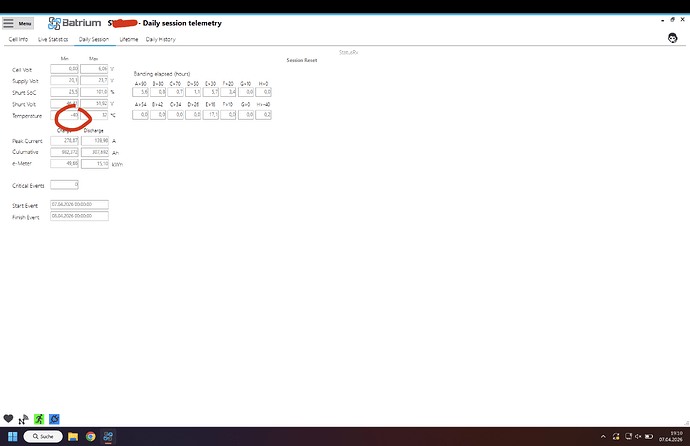 I have the following problem: when the storage is nearly full, a critical event is triggered at irregular intervals due to a temperature reading of -40 degrees from an unknown source. I cannot tell whether it comes from the BMS or the Cellmate-K9. As a result, the storage system shuts down, and I have to restart it manually every time. I have been experiencing this issue for about four months.